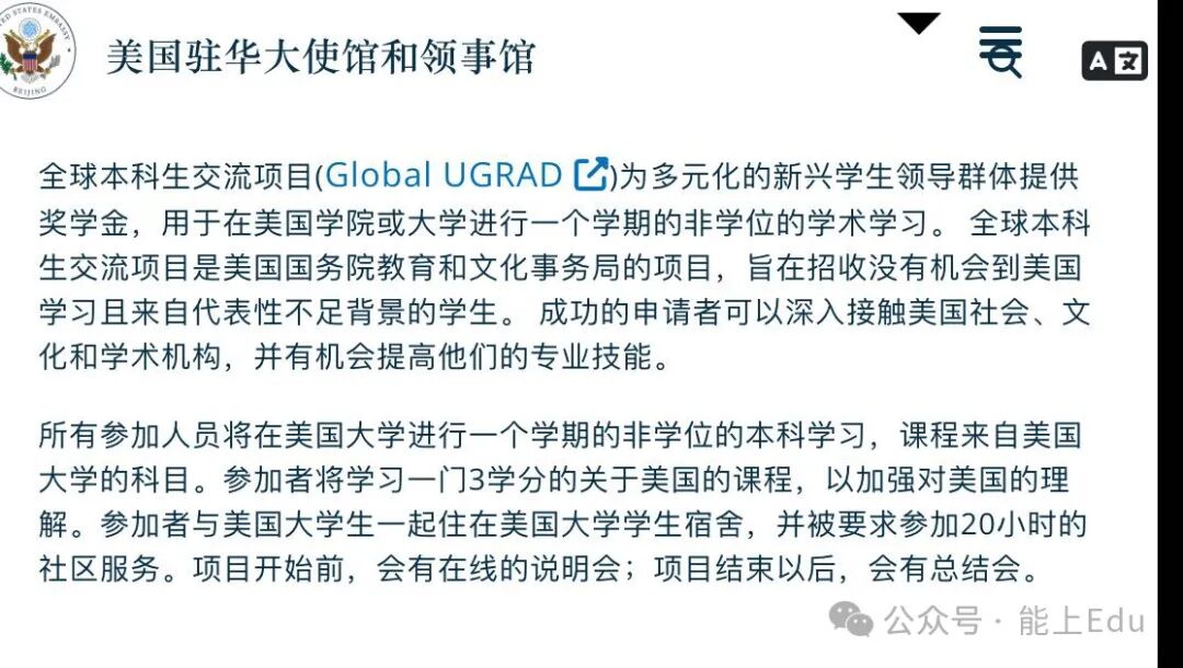 1️⃣全球本科生交流计划(Global UGRAD) 是一项由美国全额资助的文化交流项目,旨在促进美国与其他国家之间的相互了解,激励全球本科生在相关专业领域追求未来的职业。