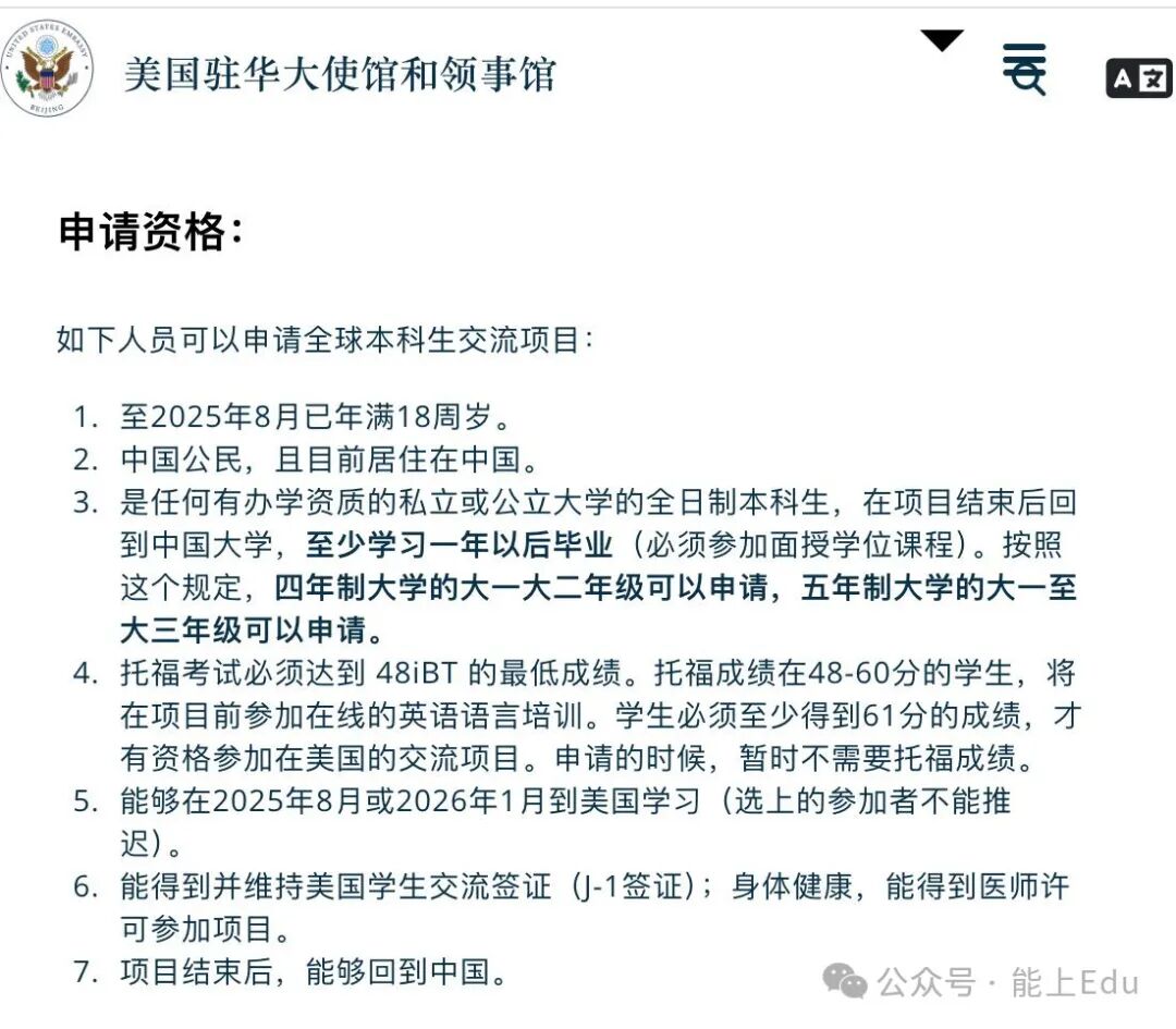 4️⃣学年要求:项目年度的 5 月之后必须至少剩下一个完整的本科学年(如申请 2025-2026 学年,则 2026 年 5 月之后至少还需一年学习时间)